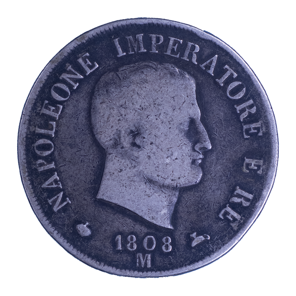 Légende : NAPOLEONE IMPERATORE E RE // 1808 / M. (Napoléon empereur et roi.)