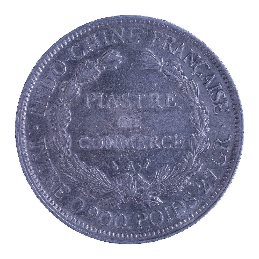 Légende : INDOCHINE FRANÇAISE TITRE 0.900. POIDS 27 GR PIASTRE DE COMMERCE