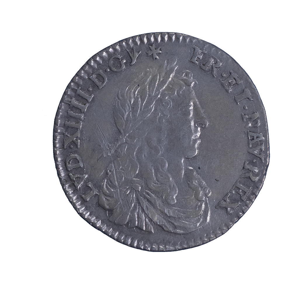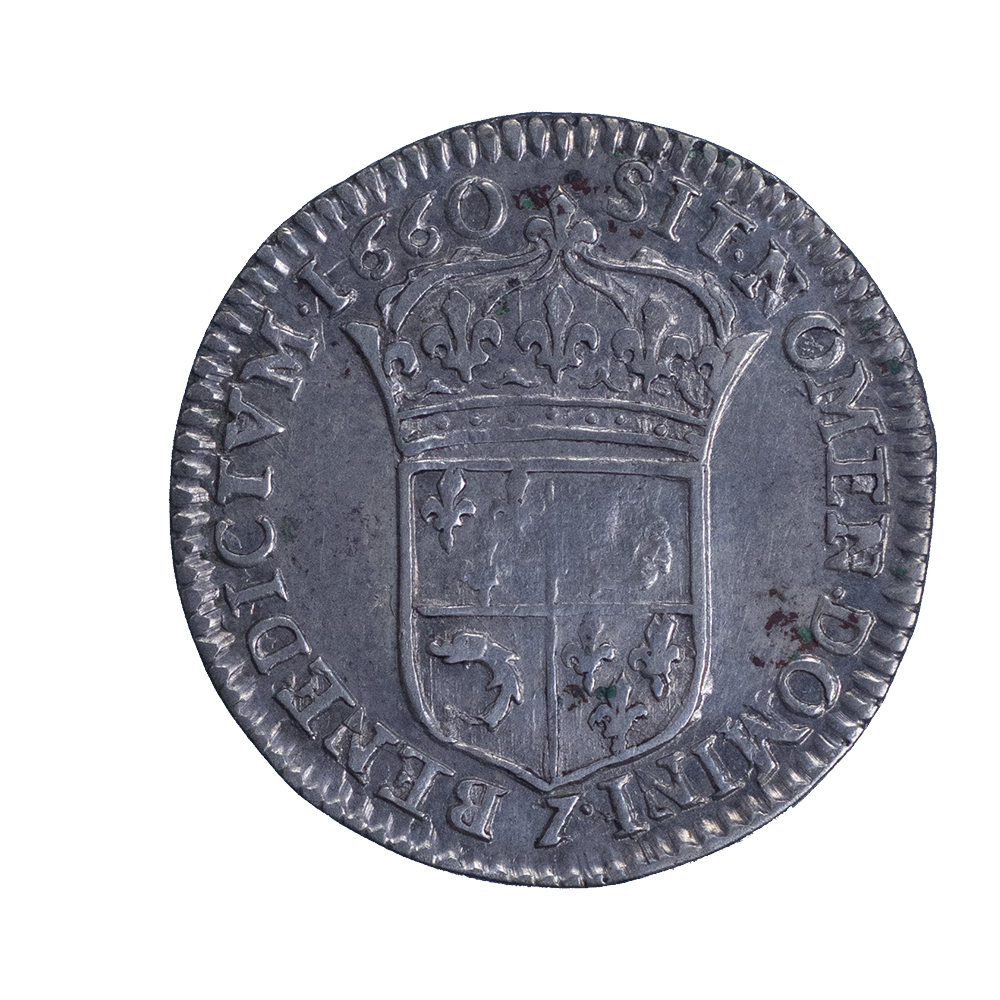 Légende : LVD. XIIII. D. G - FR ET. NAV. REX.. (Louis XIV, par la grâce de Dieu, roi de France et de Navarre).