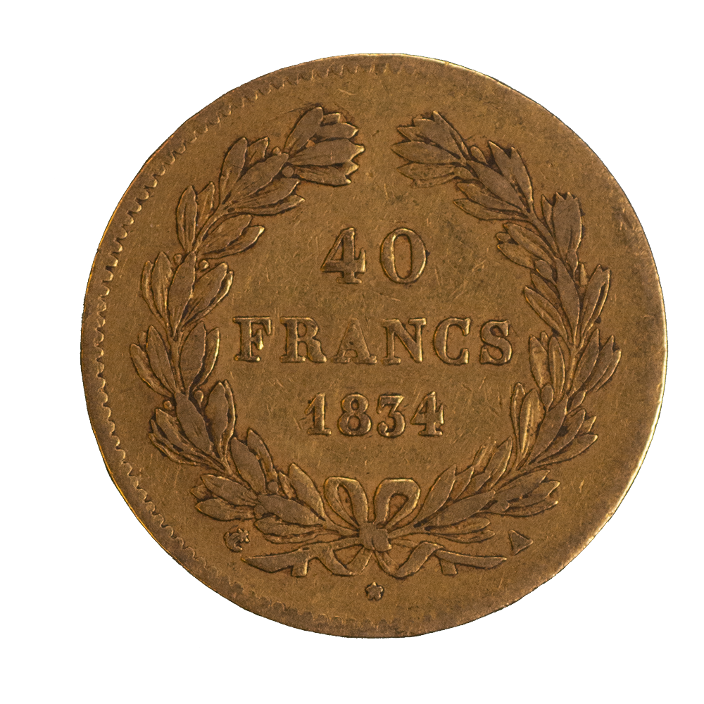 Description : 40 FRANCS dans une couronne formée d'une branche d'olivier à droite et d'une branche de laurier à gauche.
