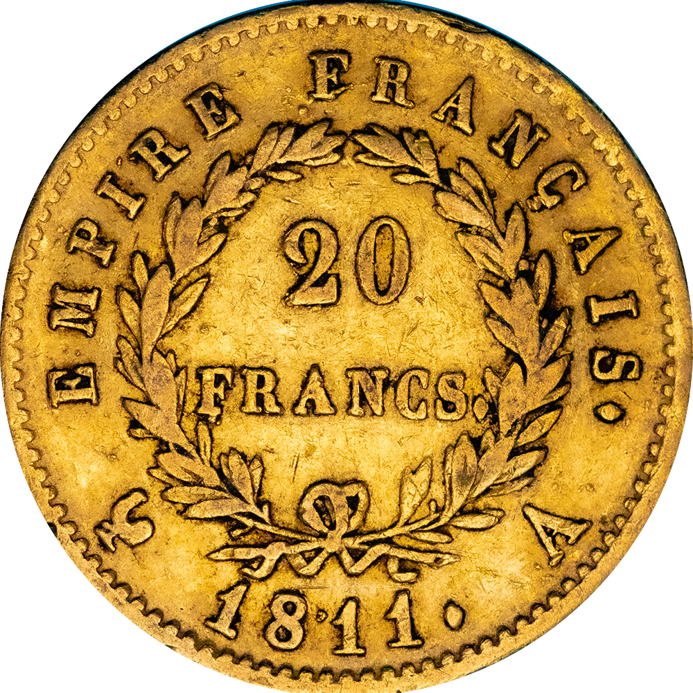 Titulature : EMPIRE FRANCAIS./ 20/ FRANCS./ 1811 A