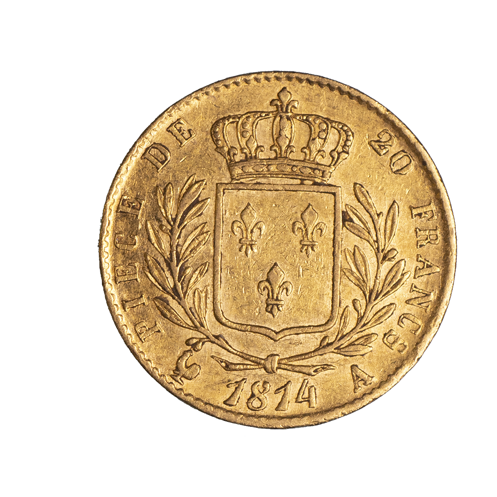 PRIX ET VALEUR DU PIÈCE DE MONNAIE : LOUIS XVIII-20 FRANCS 1814 PARIS