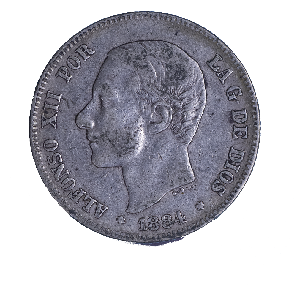 Légende : ALFONSO XII REY DE ESPANA 1884 (Alphonse XII Roi d'Espagne)