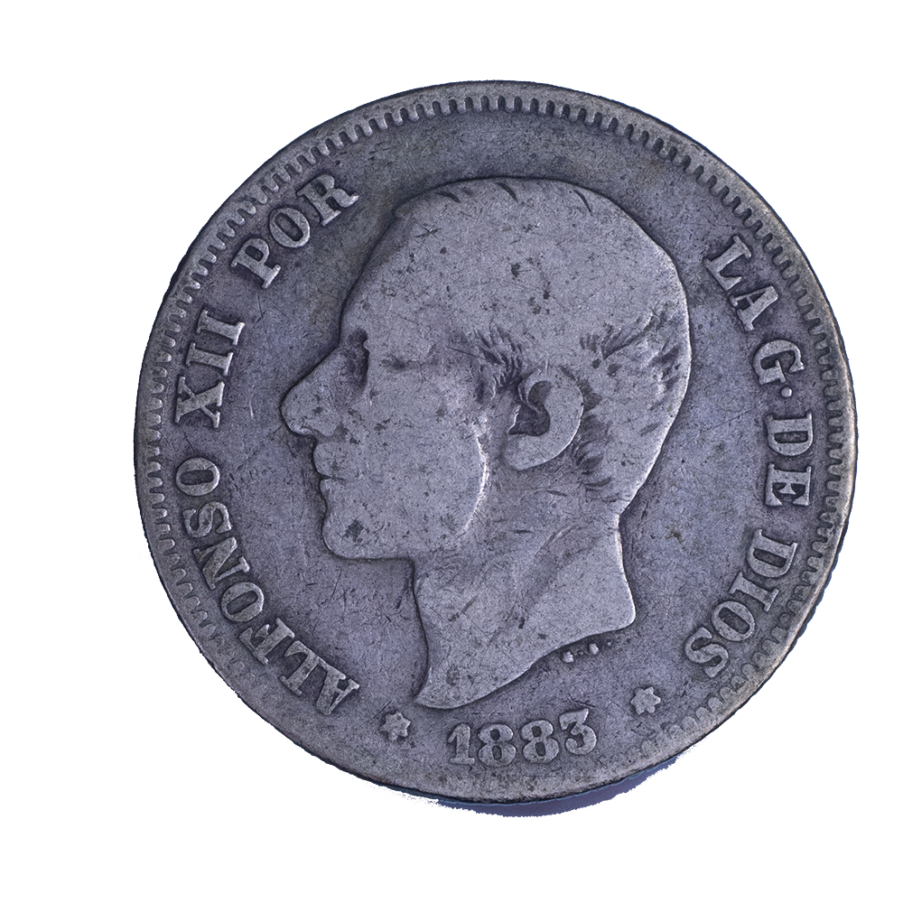 Légende : ALFONSO XII REY DE ESPANA 1883 (Alphonse XII Roi d'Espagne)