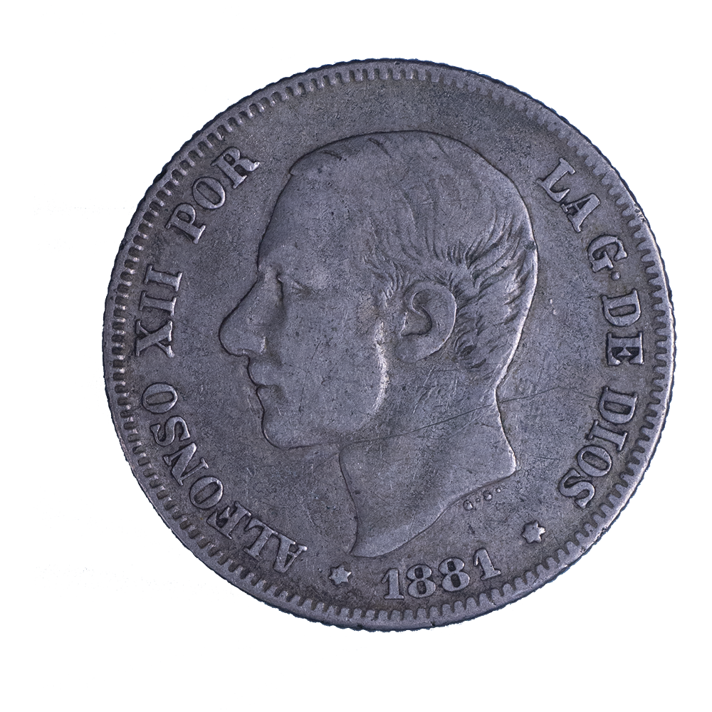Légende : ALFONSO XII REY DE ESPANA 1881 (Alphonse XII Roi d'Espagne)