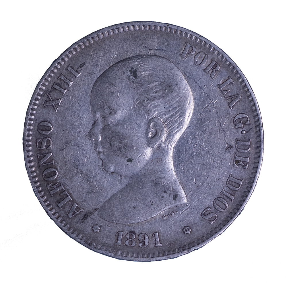 Légende : ALFONSO XIII POR - LA G. DE DIOS / * 1891 *.