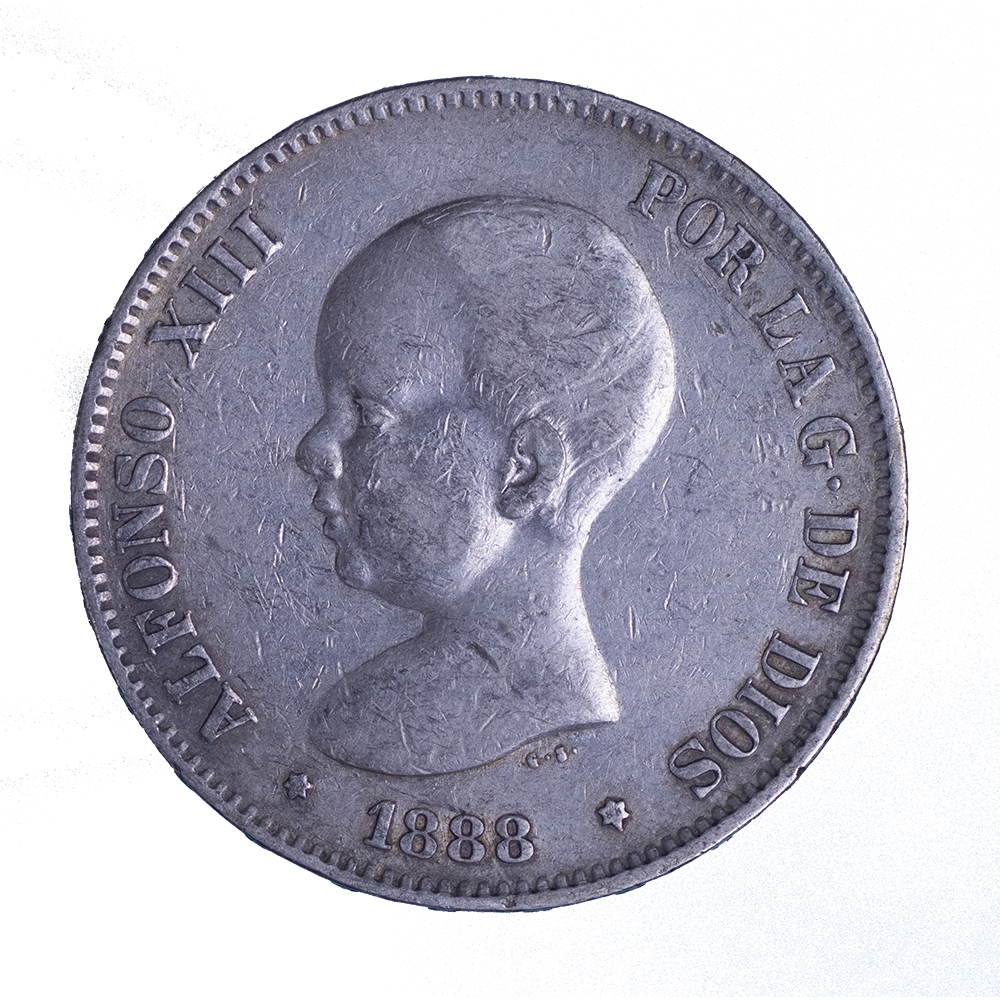 Légende : ALFONSO XIII POR - LA G. DE DIOS / * 1888 *.