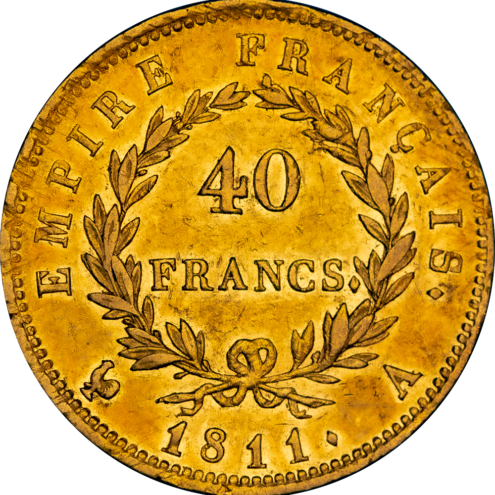 Description : 40 FRANCS sur 2 lignes dans une couronne formée de deux branches de laurier nouées à leur base.