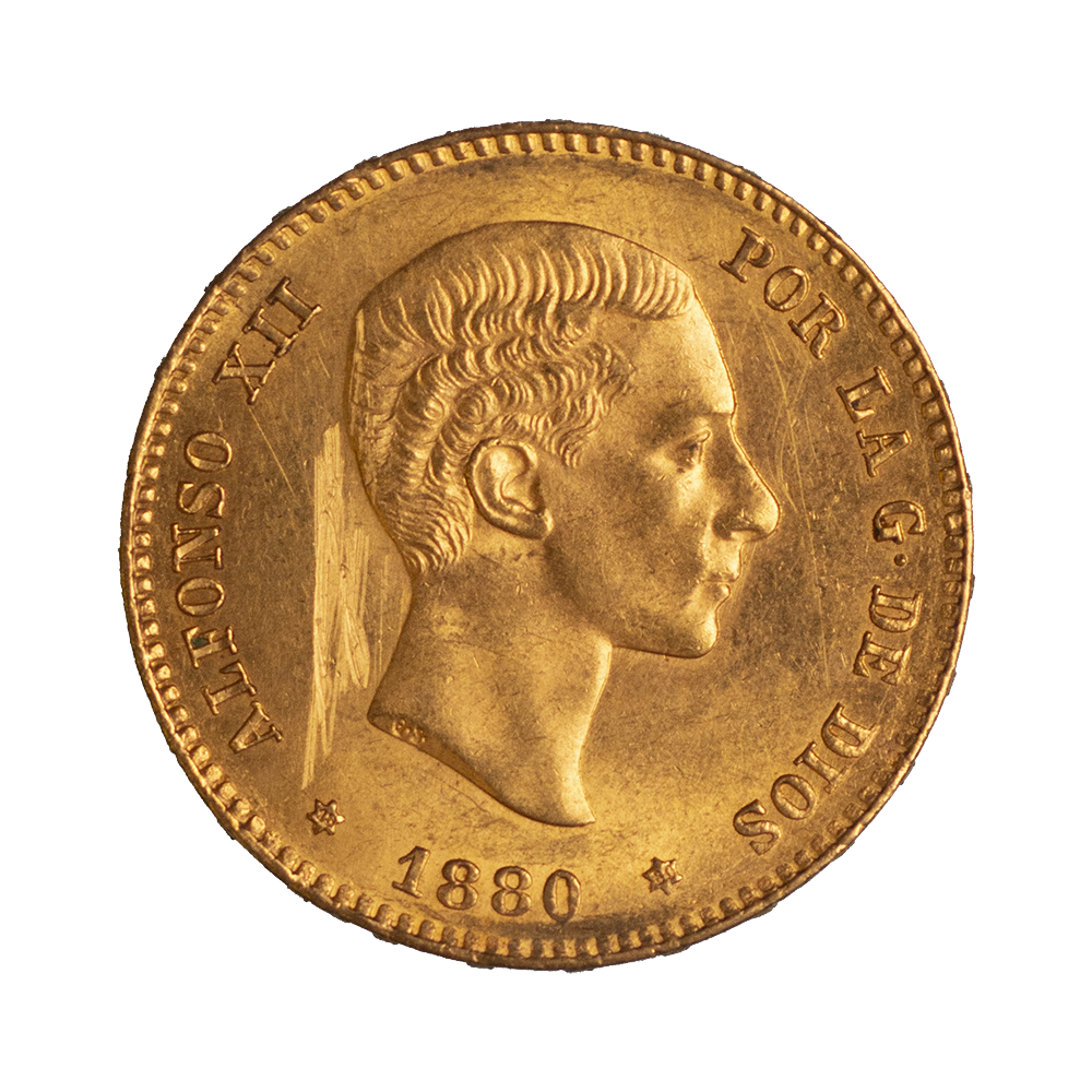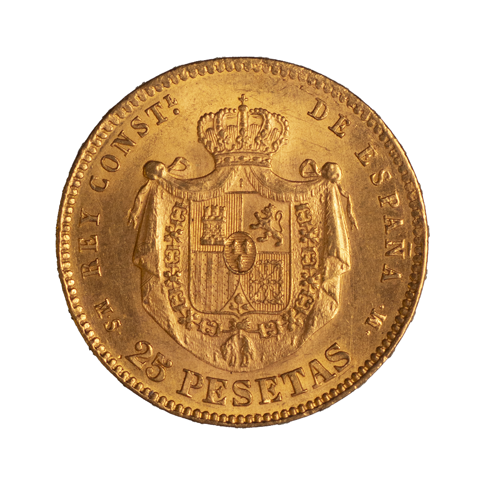 PRIX ET VALEUR DU PIÈCE DE MONNAIE : ESPAGNE-ALPHONSE XII 25 PESETAS 1880 MADRID