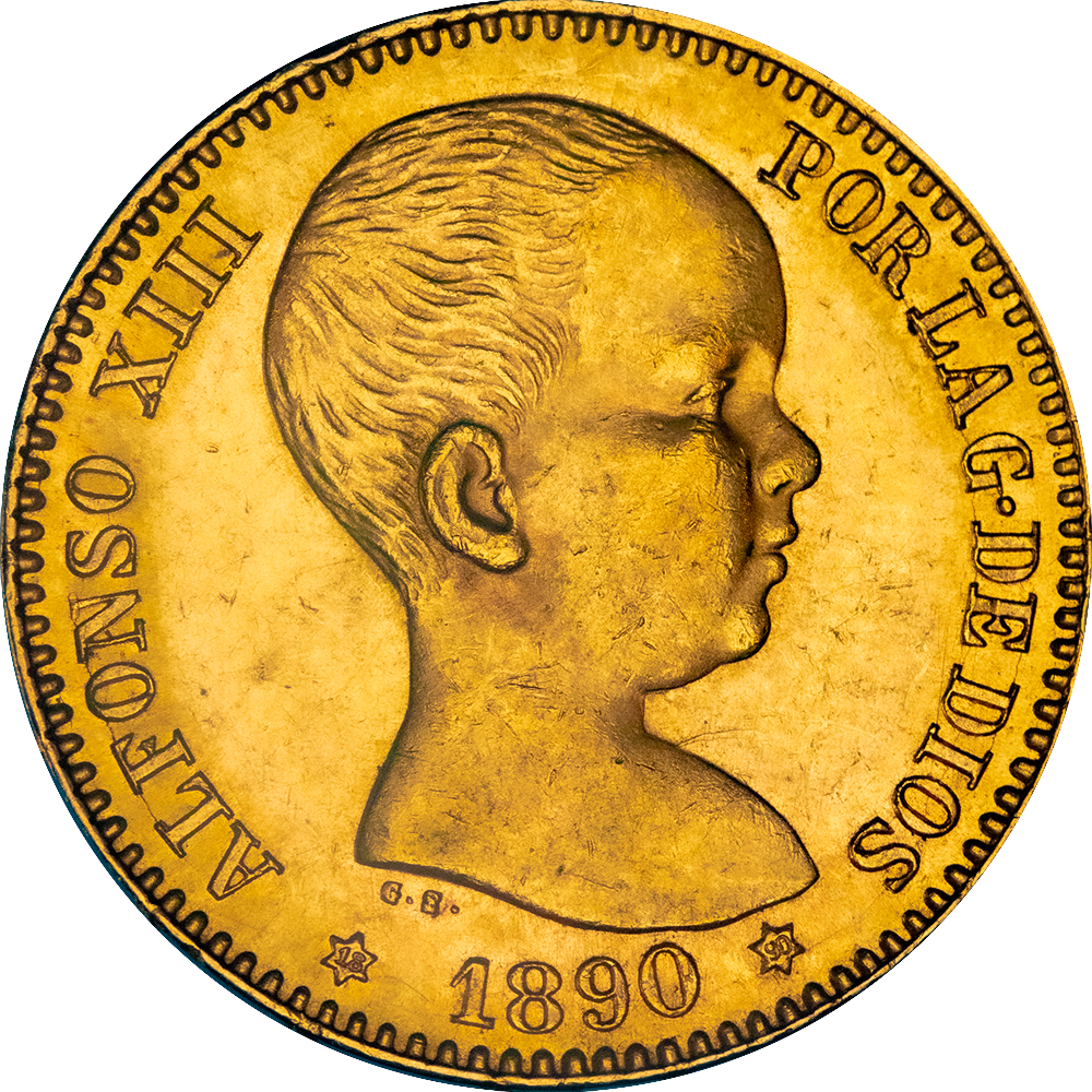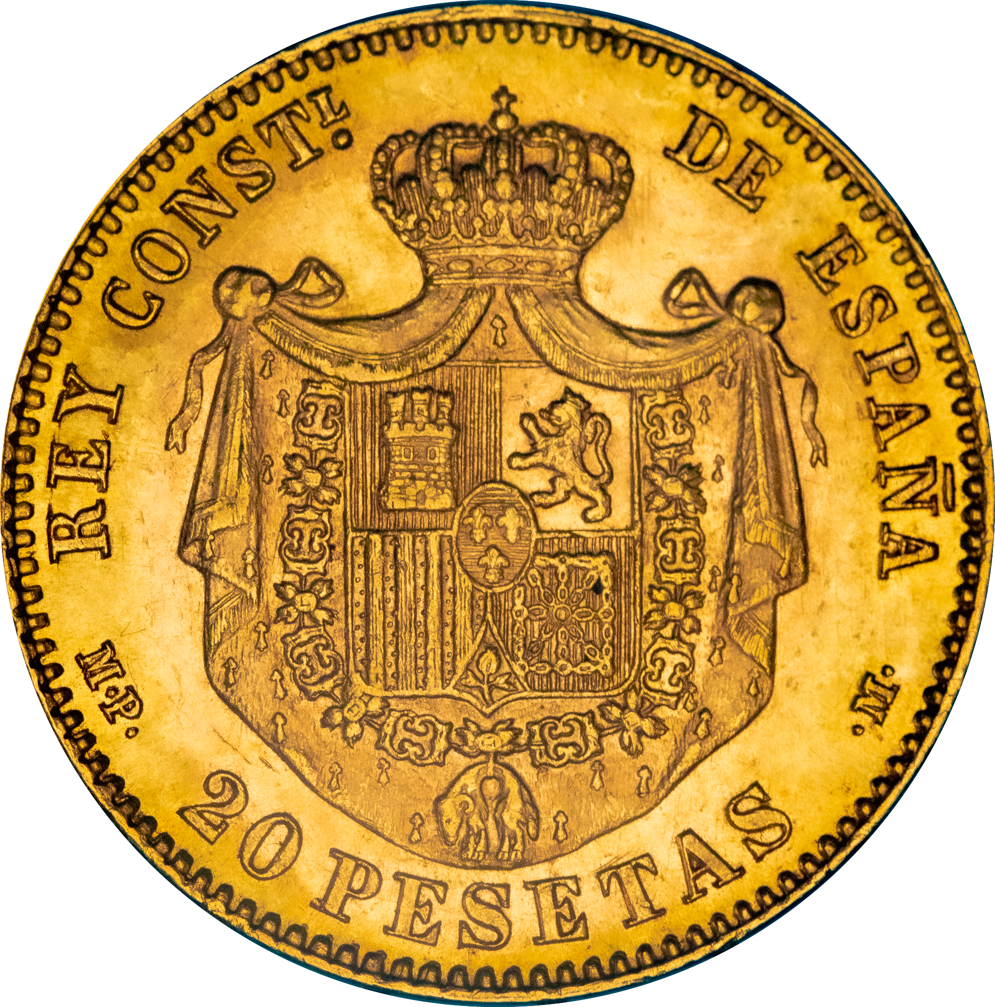 Légende : REY CONSTL DE ESPAÑA P·G· 20 PESETAS ·V·