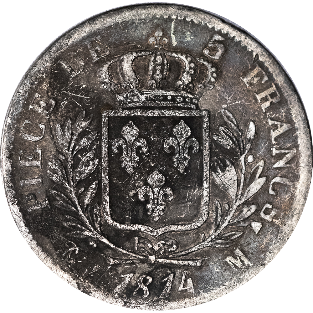 Légende : PIECE DE 5 FRANCS. 1814 M