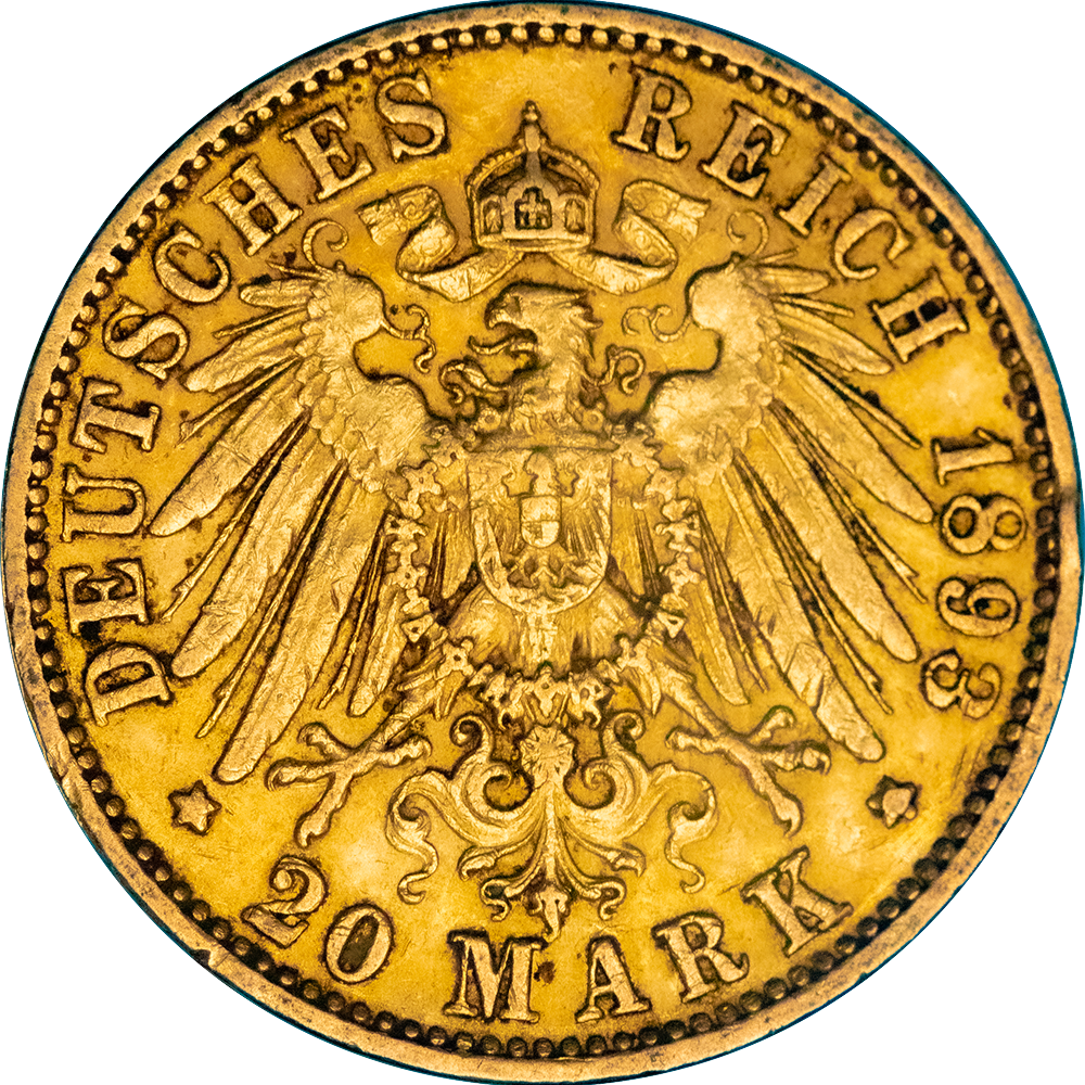 Légende : DEUTSCHES REICH 1893/ * 20 MARK *. (Empire allemand suivi du millésime )
