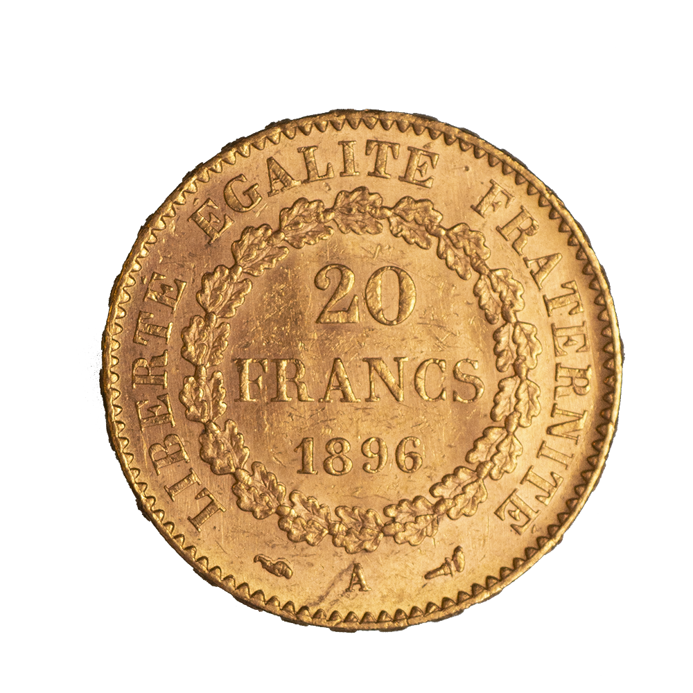 Cette variété à la torche reste particulièrement rare depuis sa découverte et manque à de nombreuses collections. Rare variété avec la torche à la place du faisceau. La majorité des 20 Francs Or 1896 a été réalisée sous l’autorité du graveur J. Lagrange (différent faisceau) et une petite partie sous l’autorité du graveur général H-A Patey (différent torche).