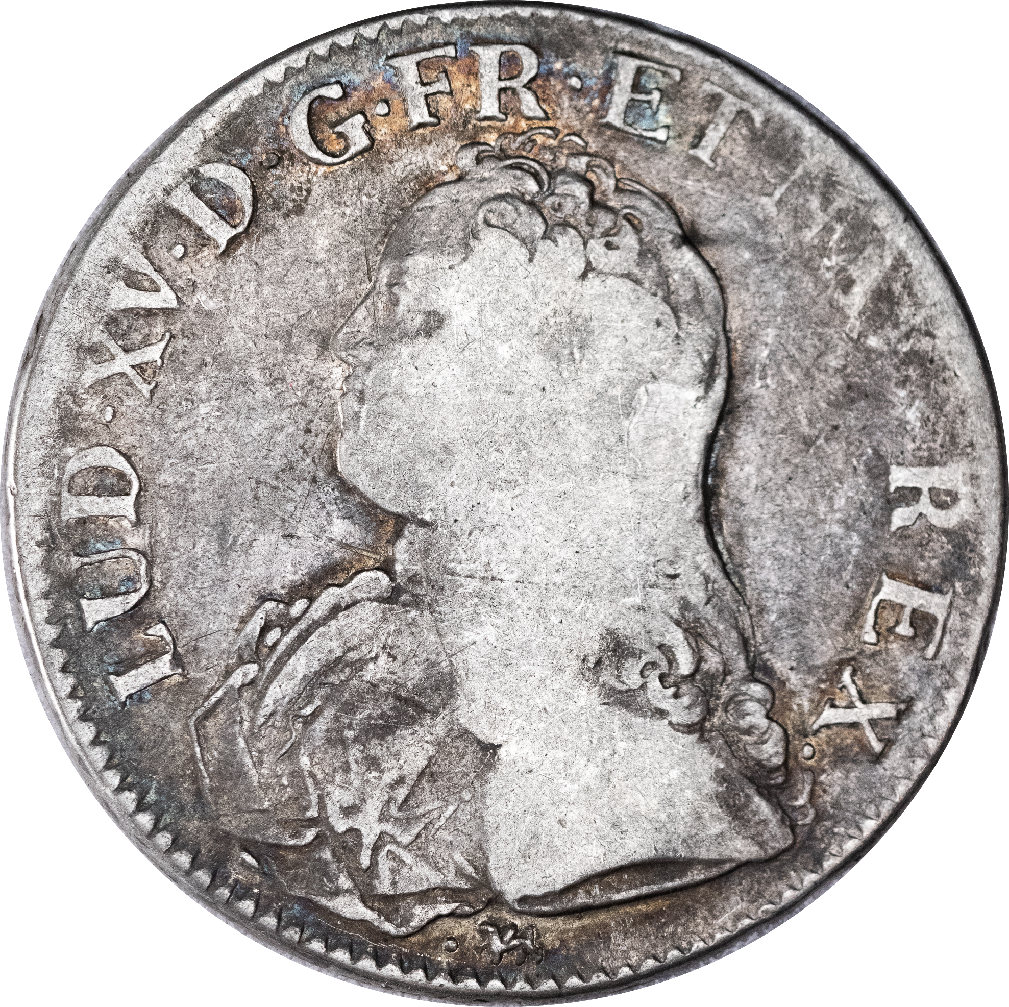 Légende : LUD. XV. D. G. FR. ET NAV. REX.. (Louis XV, par la grâce de Dieu, roi de France et de Navarre.)