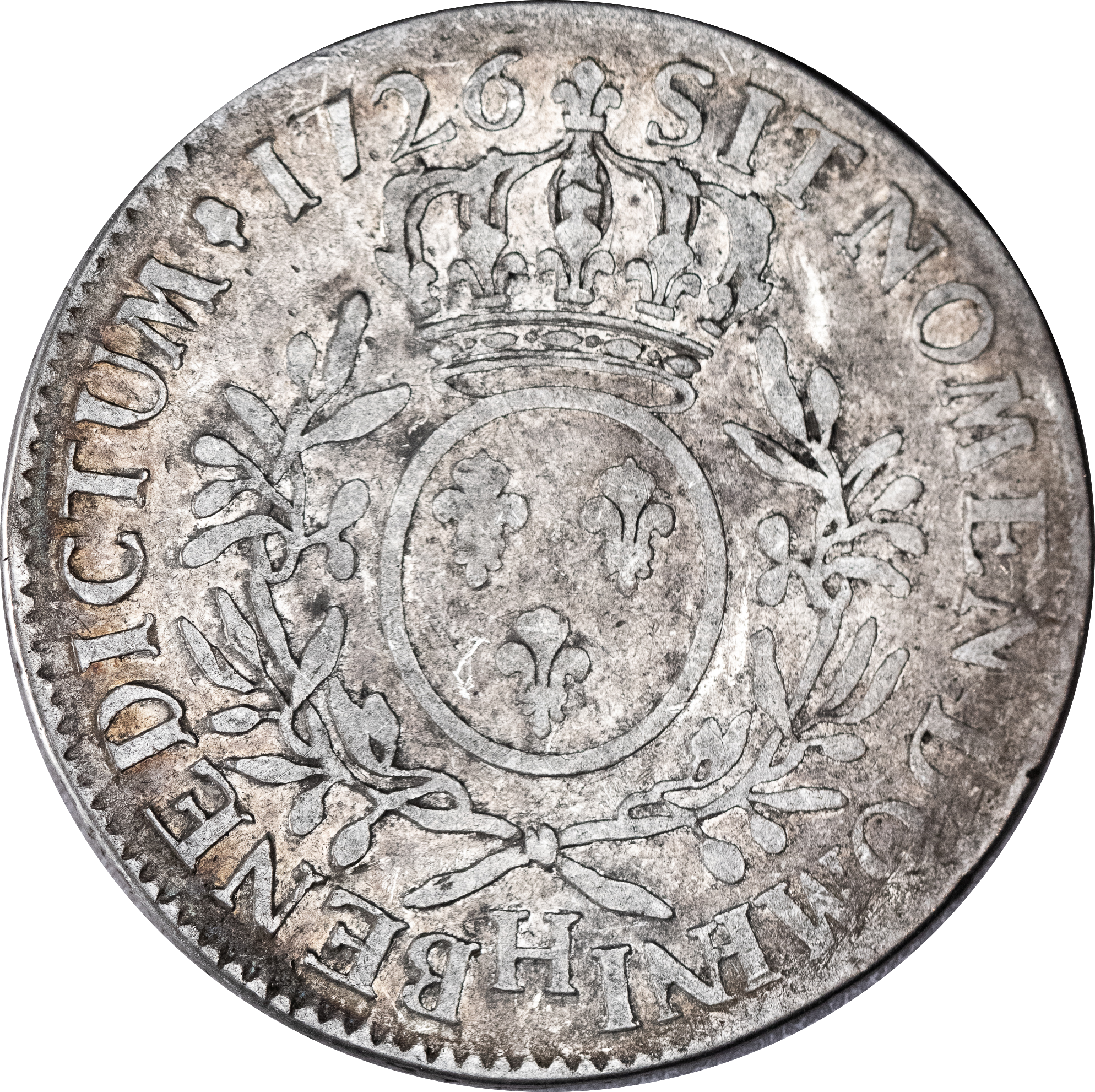 PRIX ET VALEUR DU ROYAUME DE FRANCE - ÉCU LOUIS XV AUX BRANCHES D'OLIVIER 1726 H