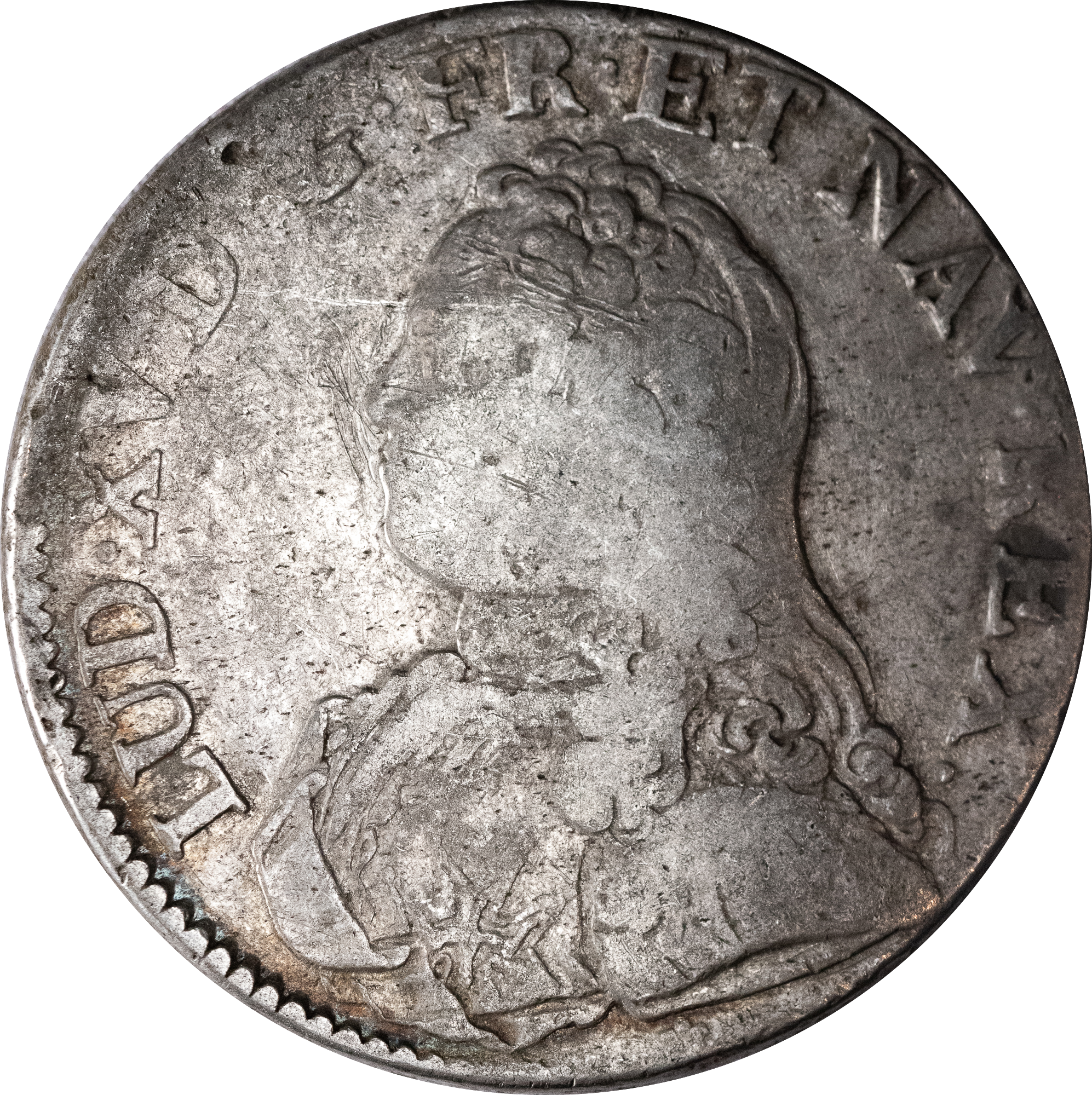 Légende : LUD. XV. D. G. FR. ET NAV. REX.. (Louis XV, par la grâce de Dieu, roi de France et de Navarre.)