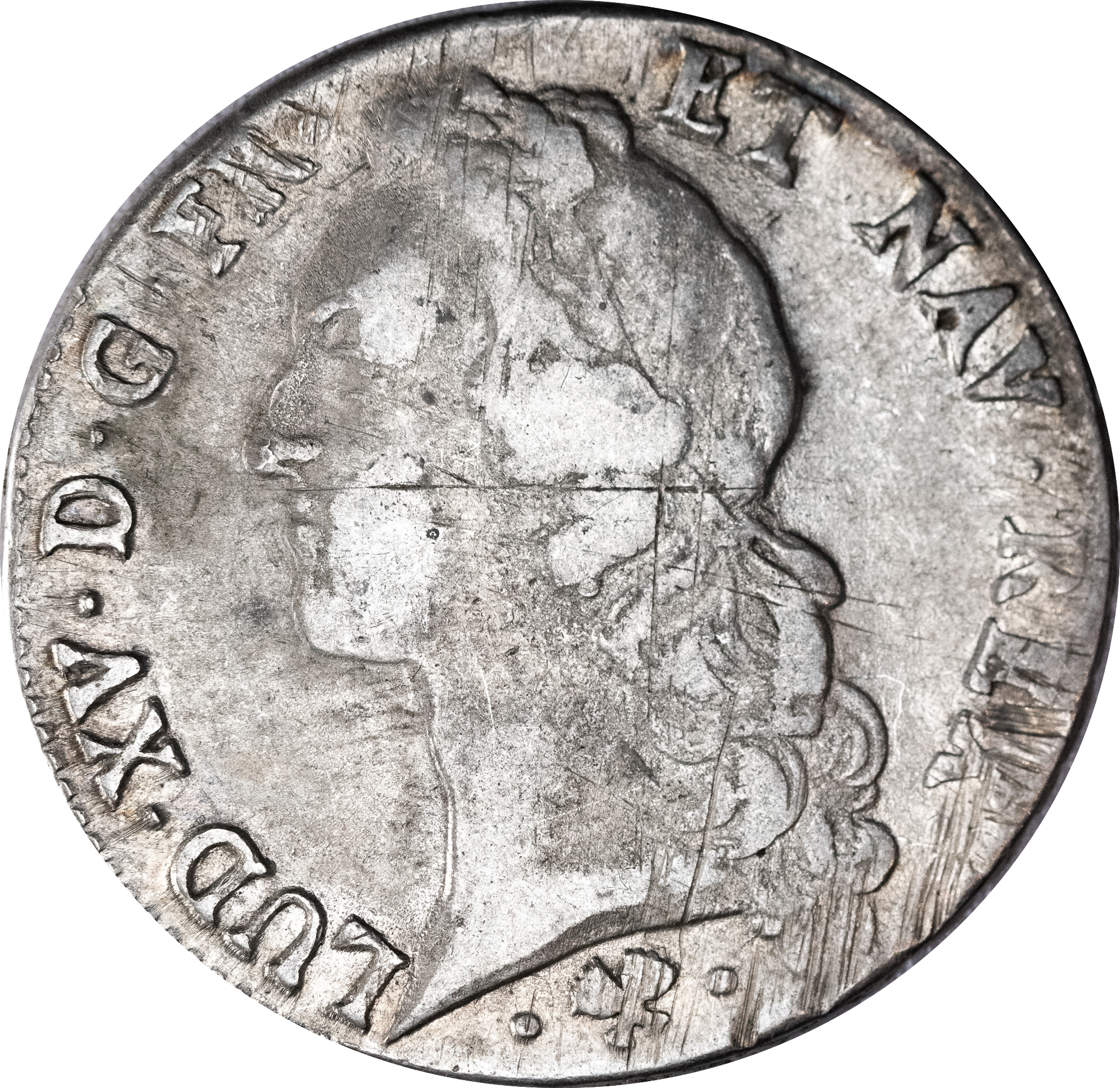 Légende : LUD. XV. D G. FR. - ET NAV. REX. .(Louis XV, par la grâce de Dieu, roi de France et de Navarre .)