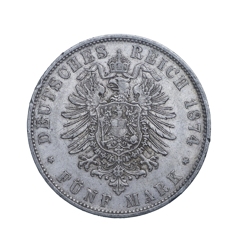 PRIX ET VALEUR DU PIÈCE DE MONNAIE : ALLEMAGNE-ROYAUME DE BAVIÈRE LOUIS II 5 MARK 1874 MUNICH