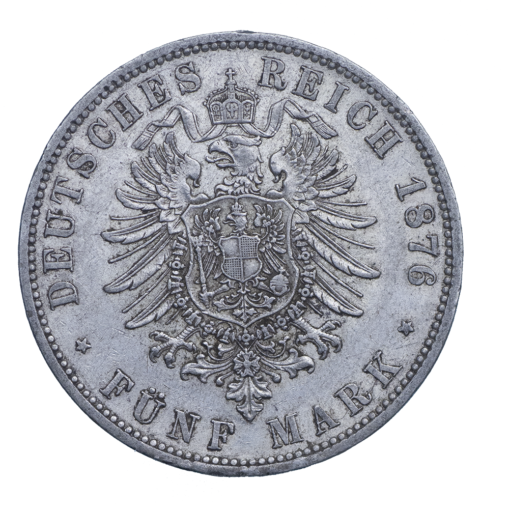 PRIX ET VALEUR DU PIÈCE DE MONNAIE : ALLEMAGNE-ROYAUME DE PRUSSE GUILLAUME IER 5 MARK 1876 BERLIN