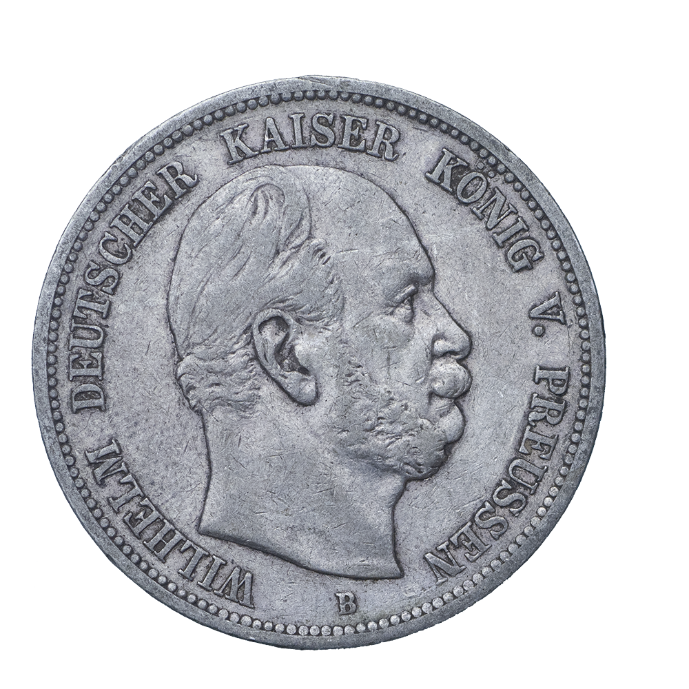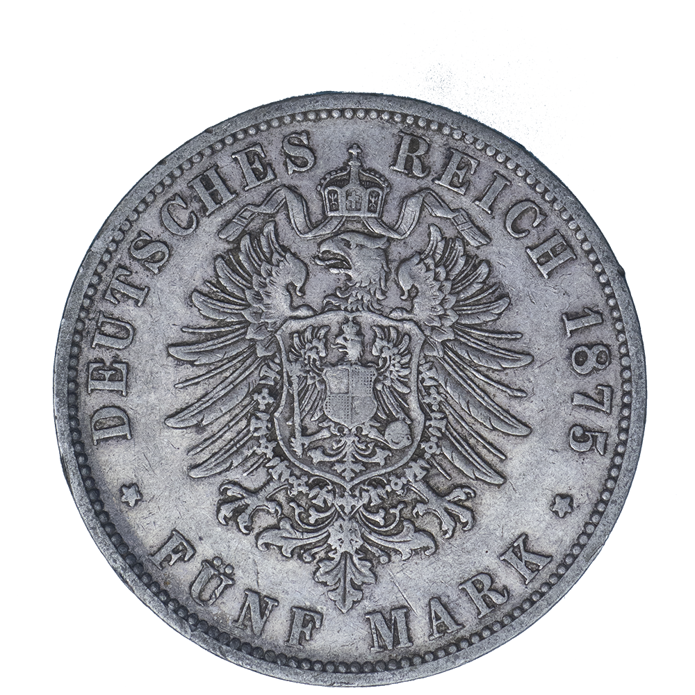 PRIX ET VALEUR DU PIÈCE DE MONNAIE : ALLEMAGNE-ROYAUME DE PRUSSE GUILLAUME IER 5 MARK 1875 HANOVRE