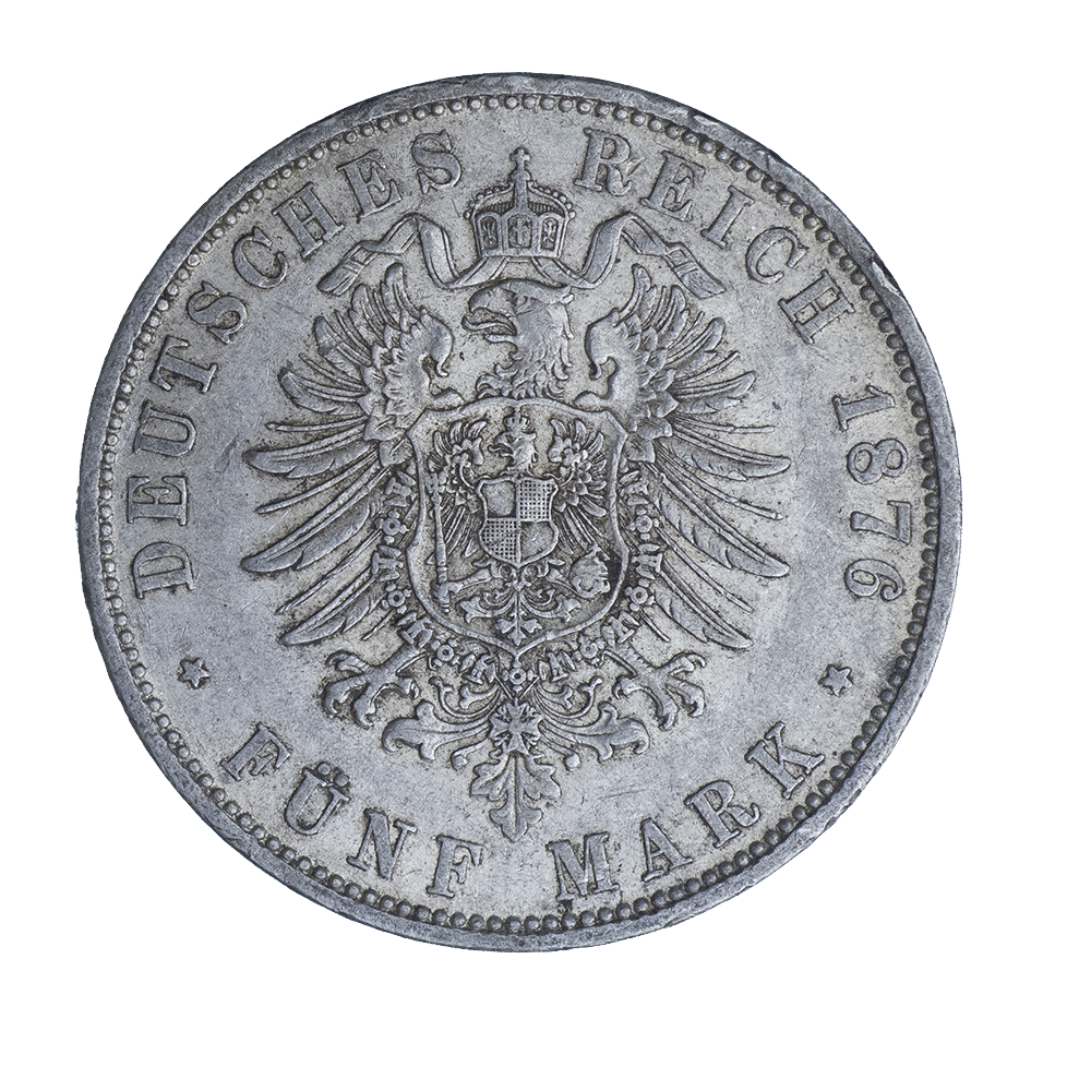 PRIX ET VALEUR DU PIÈCE DE MONNAIE : ALLEMAGNE-ROYAUME DE PRUSSE GUILLAUME IER 5 MARK 1876 FRANCFORT-SUR-LE-MAIN