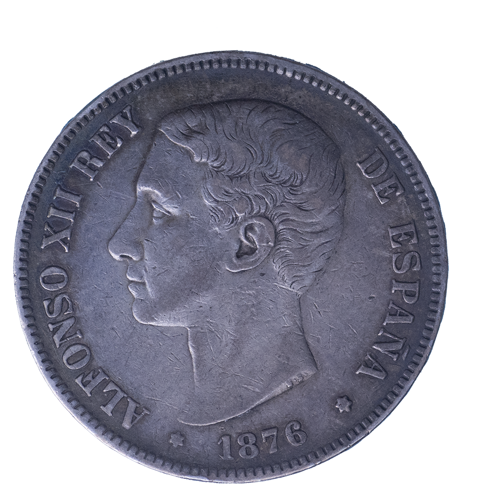 Légende : ALFONSO XII POR LA G. DE DIOS 1876 (Alphonse XII par la grâce de Dieu 1876)