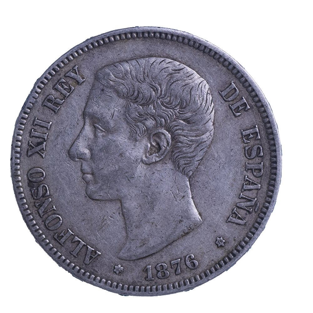 Légende : ALFONSO XII POR LA G. DE DIOS 1876 (Alphonse XII par la grâce de Dieu 1876)