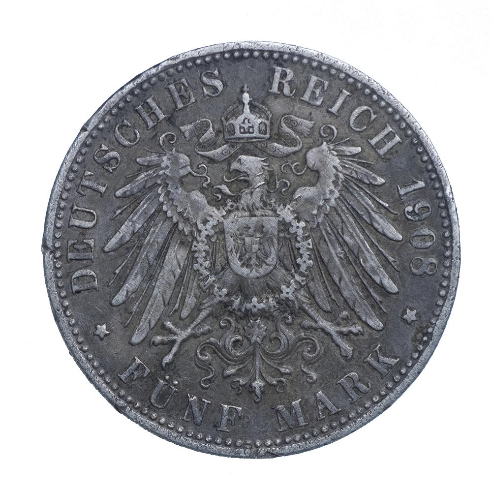 PRIX ET VALEUR DU PIÈCE DE MONNAIE : ALLEMAGNE-ROYAUME DE BAYERN 5 MARK OTTO KOENIG 1908 MUNICH