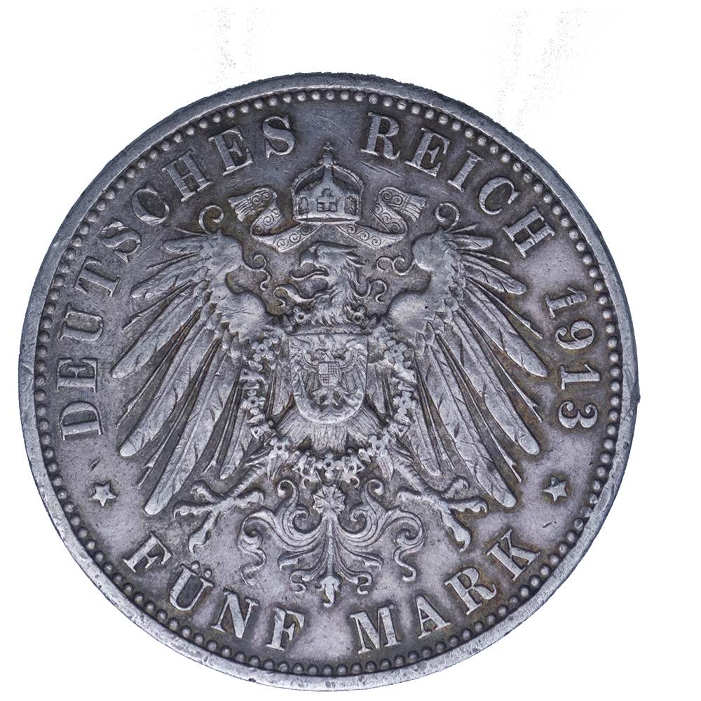 PRIX ET VALEUR DU PIÈCE DE MONNAIE : ALLEMAGNE-ROYAUME DE PRUSSE WILHELM 5 MARK 1913 BERLIN