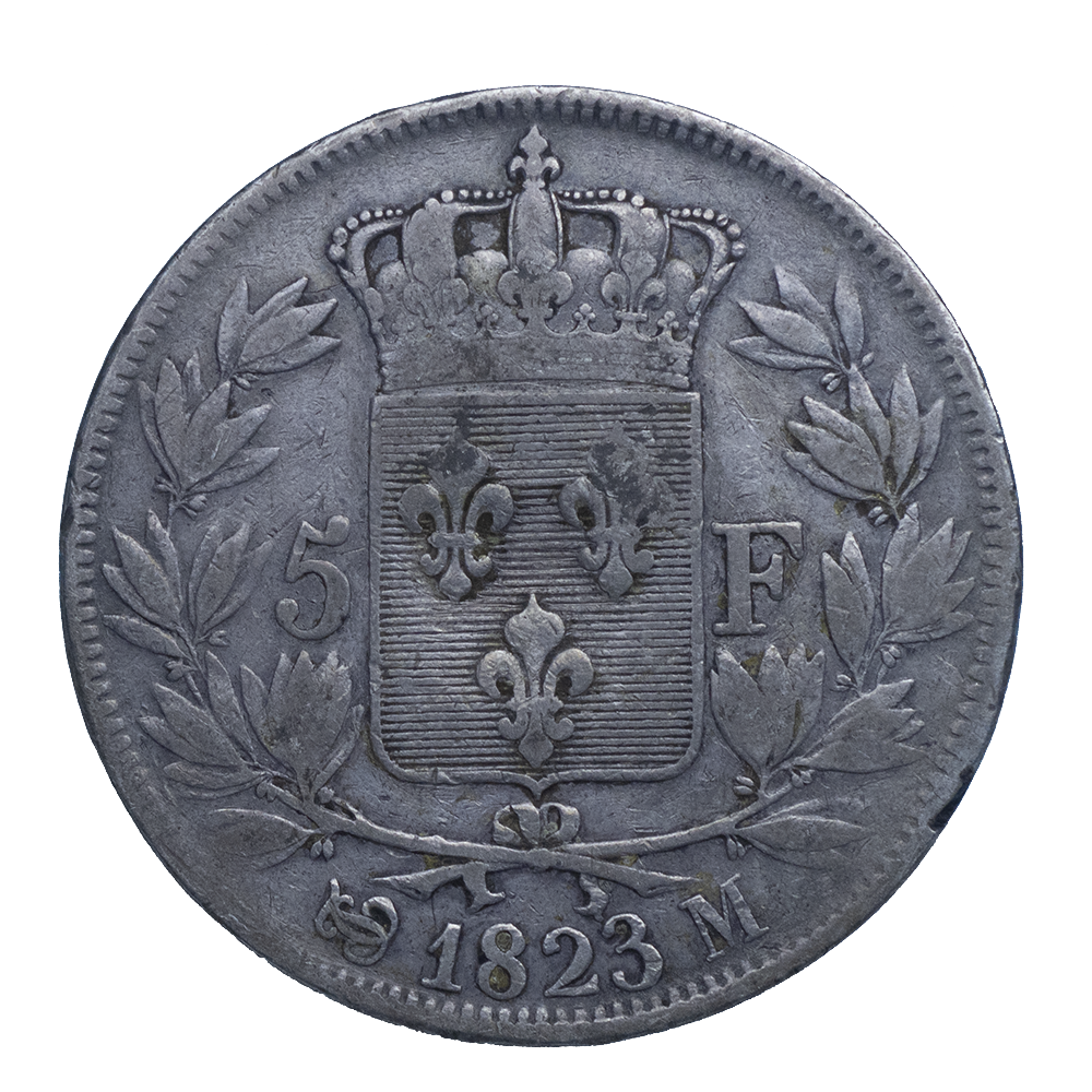 Légende : PIECE DE 5 FRANCS. 1823 M