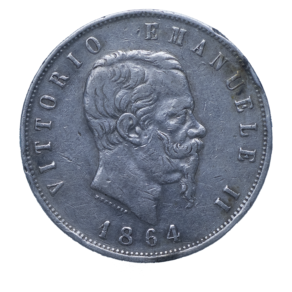 PRIX ET VALEUR DU PIÈCE DE MONNAIE : ROYAUME D'ITALIE - 5 LIRE VICTOR EMMANUEL II 1864 NAPLES