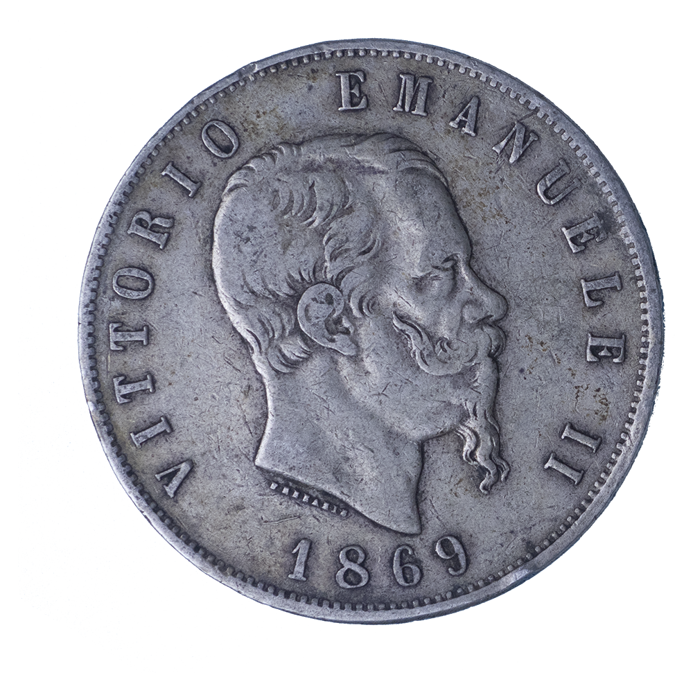 Pièce de monnaie : Royaume D'Italie - 5 Lire Victor Emmanuel II 1869 Milan