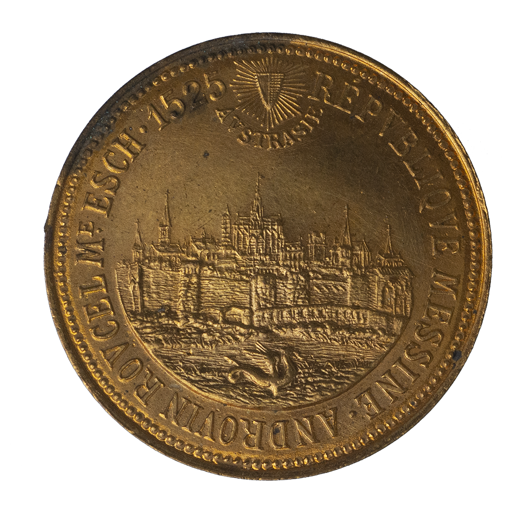 Légende : RÉPVBLIQVE MESSINE . ANDROVIN ROVCELME ESCH. 1525 AVSTRASIE.