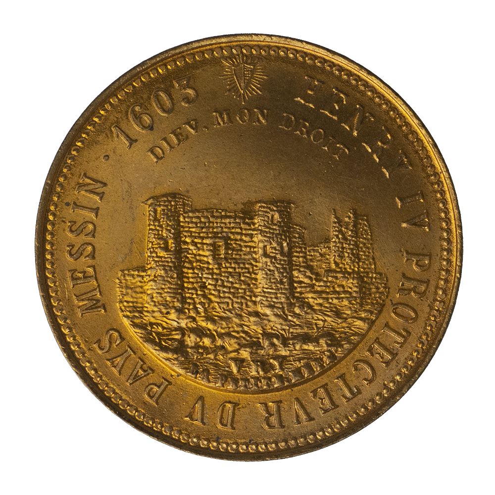 Légende : HENRY IV PROTECTEVR DV PAYS MESSIN 1603 . DIEV MON DROIT / VRY LA PETITE METZ.