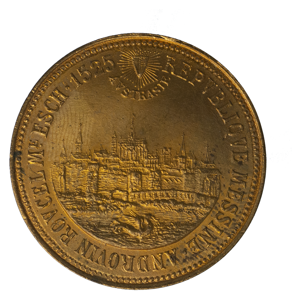 Légende : RÉPVBLIQVE MESSINE . ANDROVIN ROVCELME ESCH. 1525 AVSTRASIE.