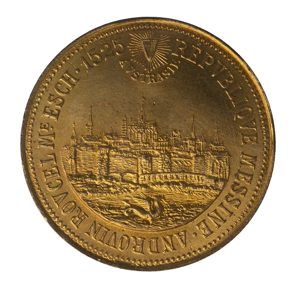Légende : RÉPVBLIQVE MESSINE . ANDROVIN ROVCELME ESCH. 1525 AVSTRASIE.