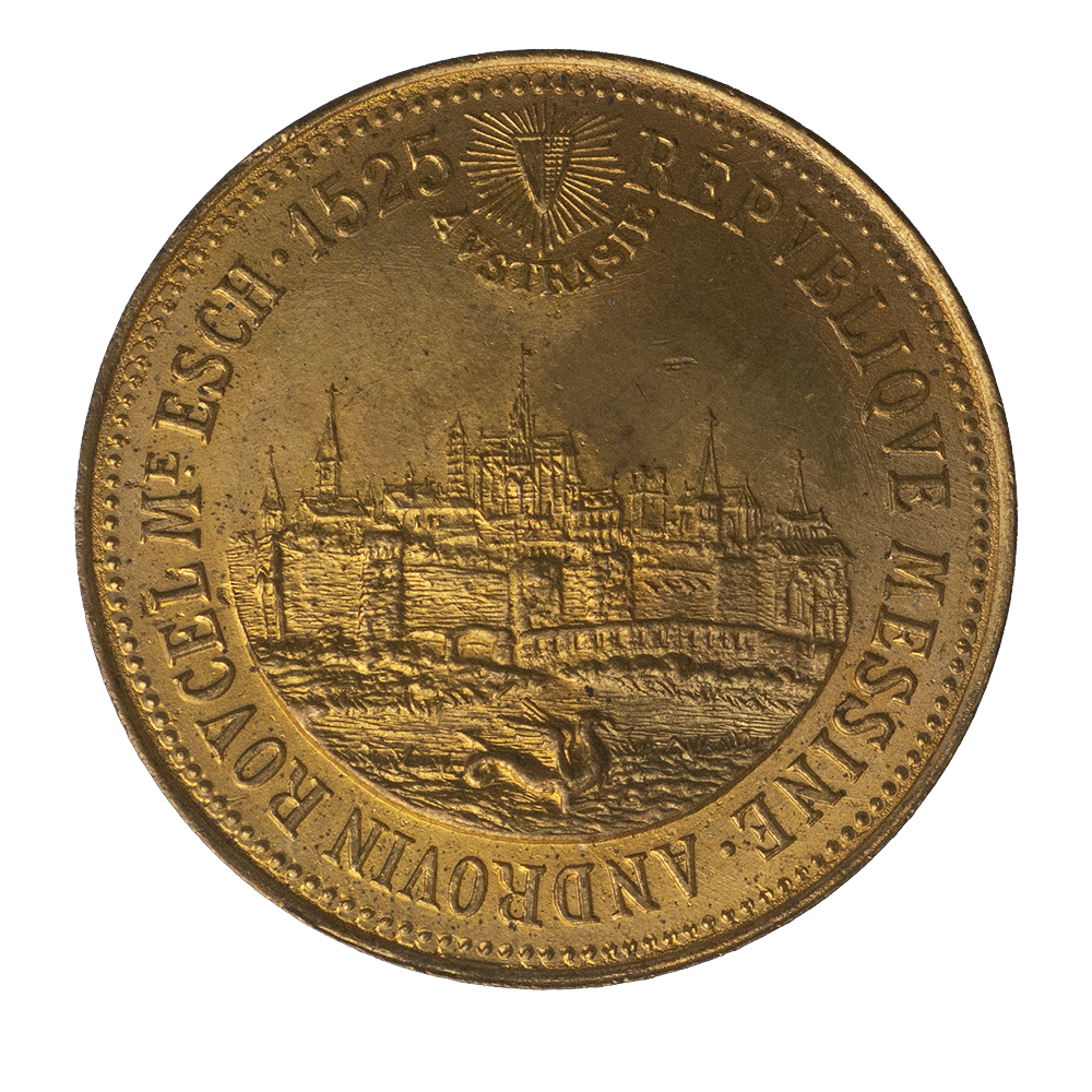 Légende : RÉPVBLIQVE MESSINE . ANDROVIN ROVCELME ESCH. 1525 AVSTRASIE.