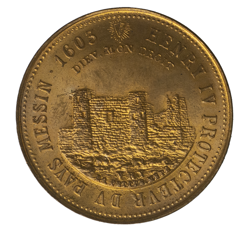 Légende : HENRY IV PROTECTEVR DV PAYS MESSIN 1603 . DIEV MON DROIT / VRY LA PETITE METZ.