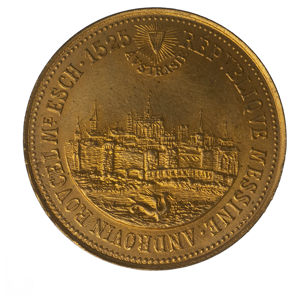Légende : RÉPVBLIQVE MESSINE . ANDROVIN ROVCELME ESCH. 1525 AVSTRASIE.