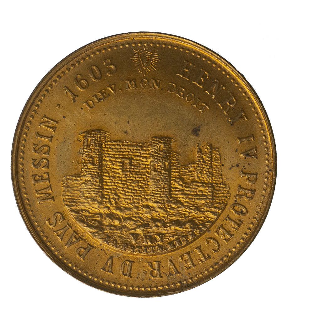 Légende : HENRY IV PROTECTEVR DV PAYS MESSIN 1603 . DIEV MON DROIT / VRY LA PETITE METZ.