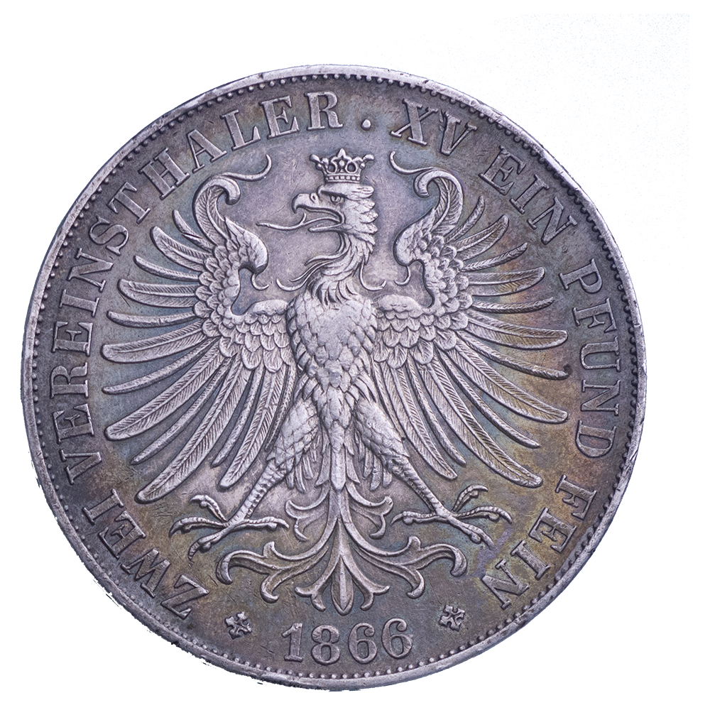 PRIX ET VALEUR DU PIÈCE DE MONNAIE : ALLEMAGNE-VILLE DE FRANCFORT 2 THALER 1866