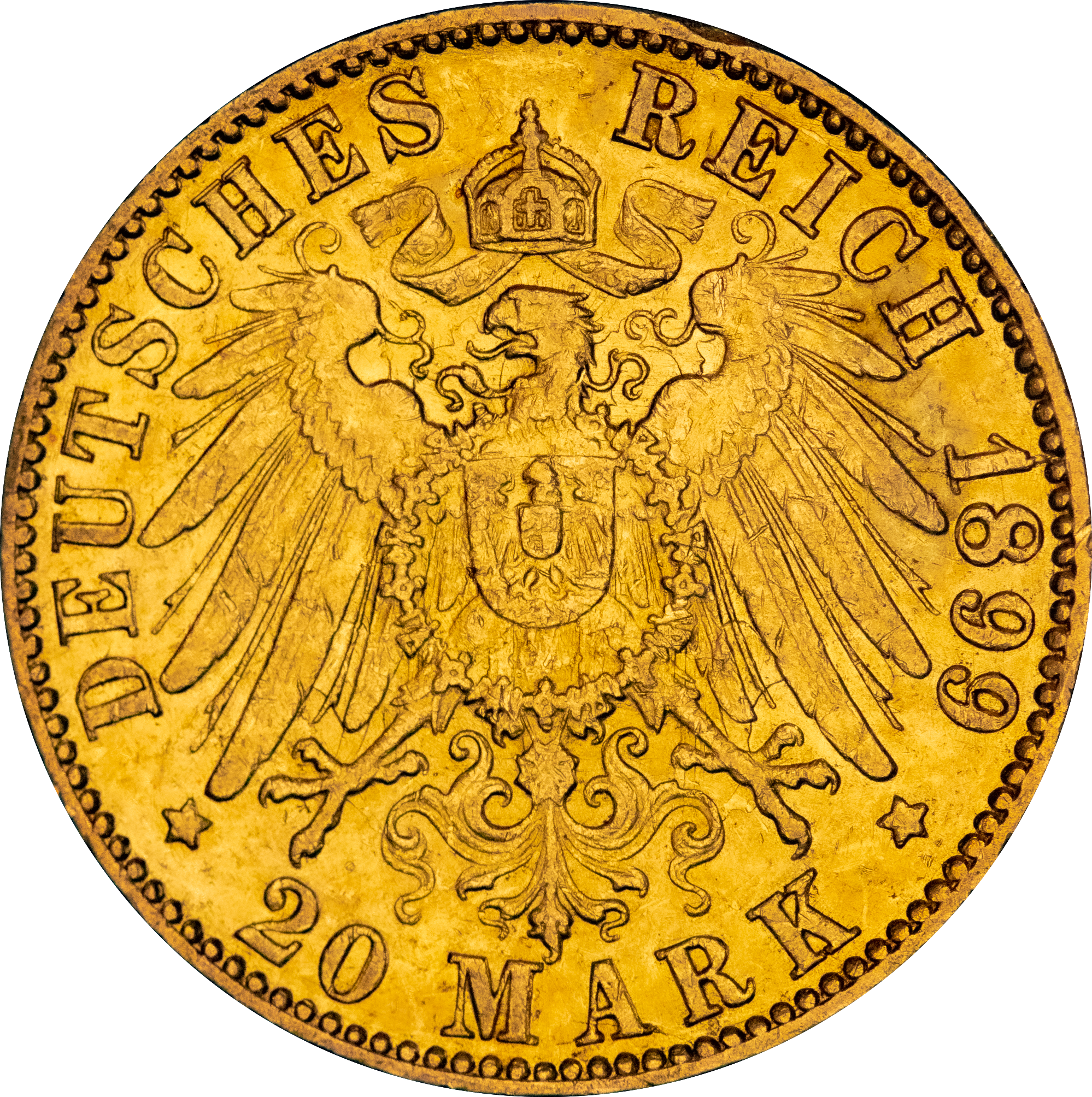 Légende : DEUTSCHES REICH 1899/ * 20 MARK *. (Empire allemand suivi du millésime )