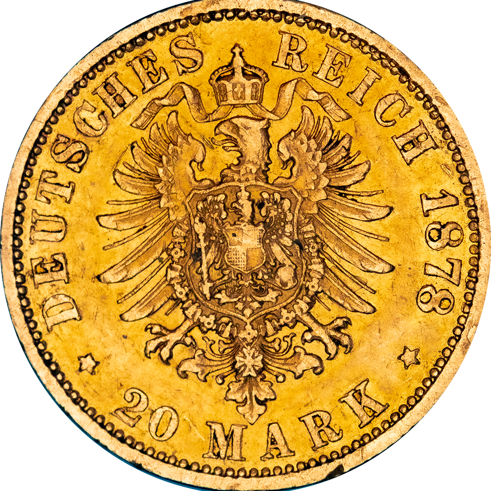 Légende : DEUTSCHES REICH 1878/ * 20 MARK *. (Empire allemand suivi du millésime )