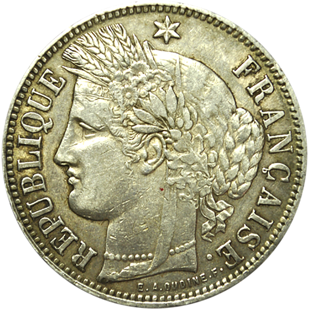 Fabriquée dans l'urgence et dans une période troublée de l'histoire de France, cette pièce possède l'avers des 5 francs de la IIème République et le revers des 5 francs de Louis-Philippe.