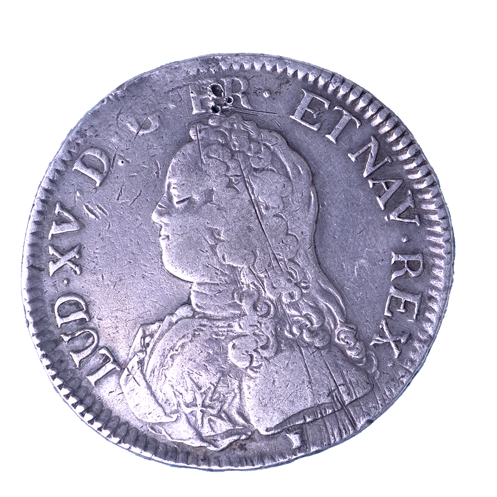 Légende : LUD. XV. D. G. FR. ET NAV. REX.. (Louis XV, par la grâce de Dieu, roi de France et de Navarre.)