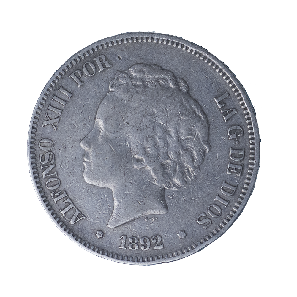 Légende : ALFONSO XIII POR - LA G. DE DIOS / * 1892 *.