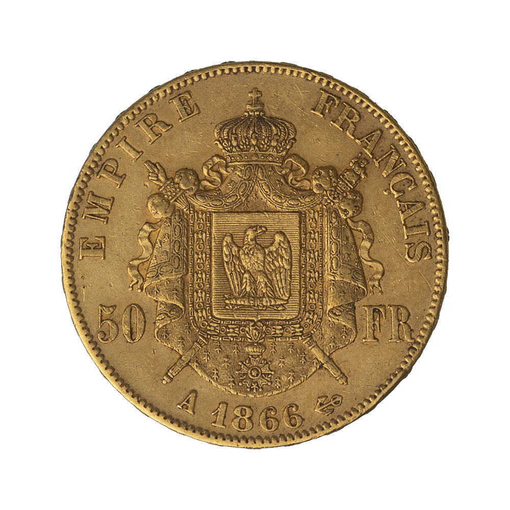Pièce de monnaie : Second-Empire-50 Francs Napoléon III Tête laurée 1866 ParisPIÈCE DE MONNAIE : SECOND-EMPIRE-50 FRANCS NAPOLÉON III TÊTE LAURÉE 1866 PARIS
