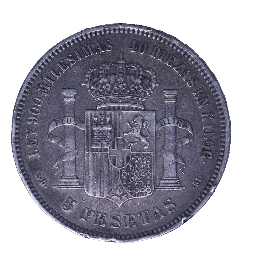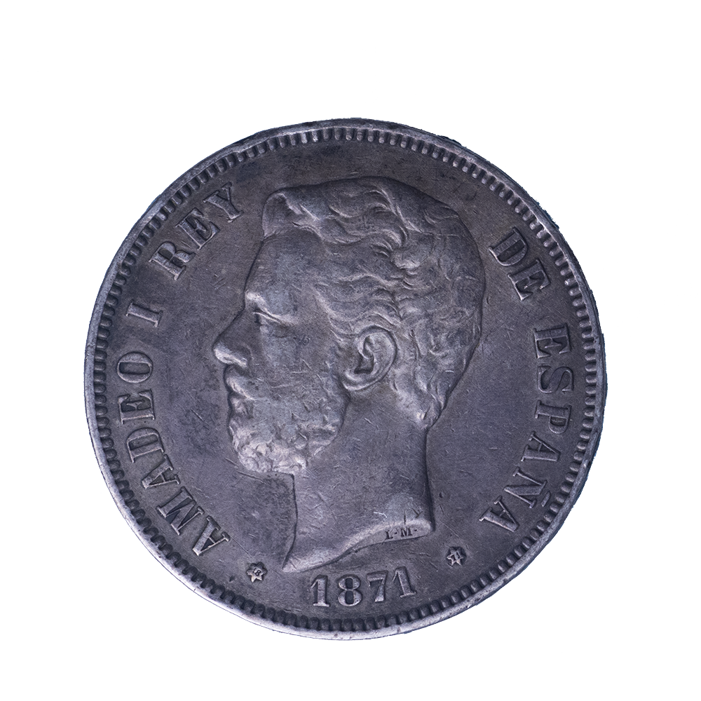 Légende : AMADEO I REY DE ESPANA 1871 (Amédée I Roi d'Espagne 1871)