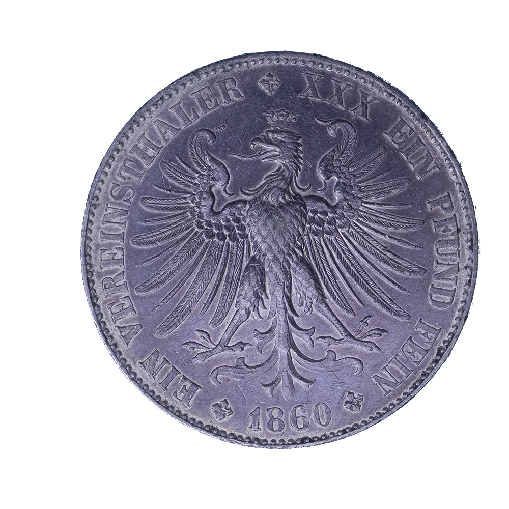 Légende : EIN VEREINSTHALER . XXX EIN PFUND FEIN // * 1860 *.