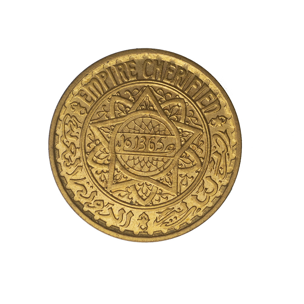 Légende : EN FRANÇAIS ET ARABE, EMPIRE CHERIFIEN 1365.